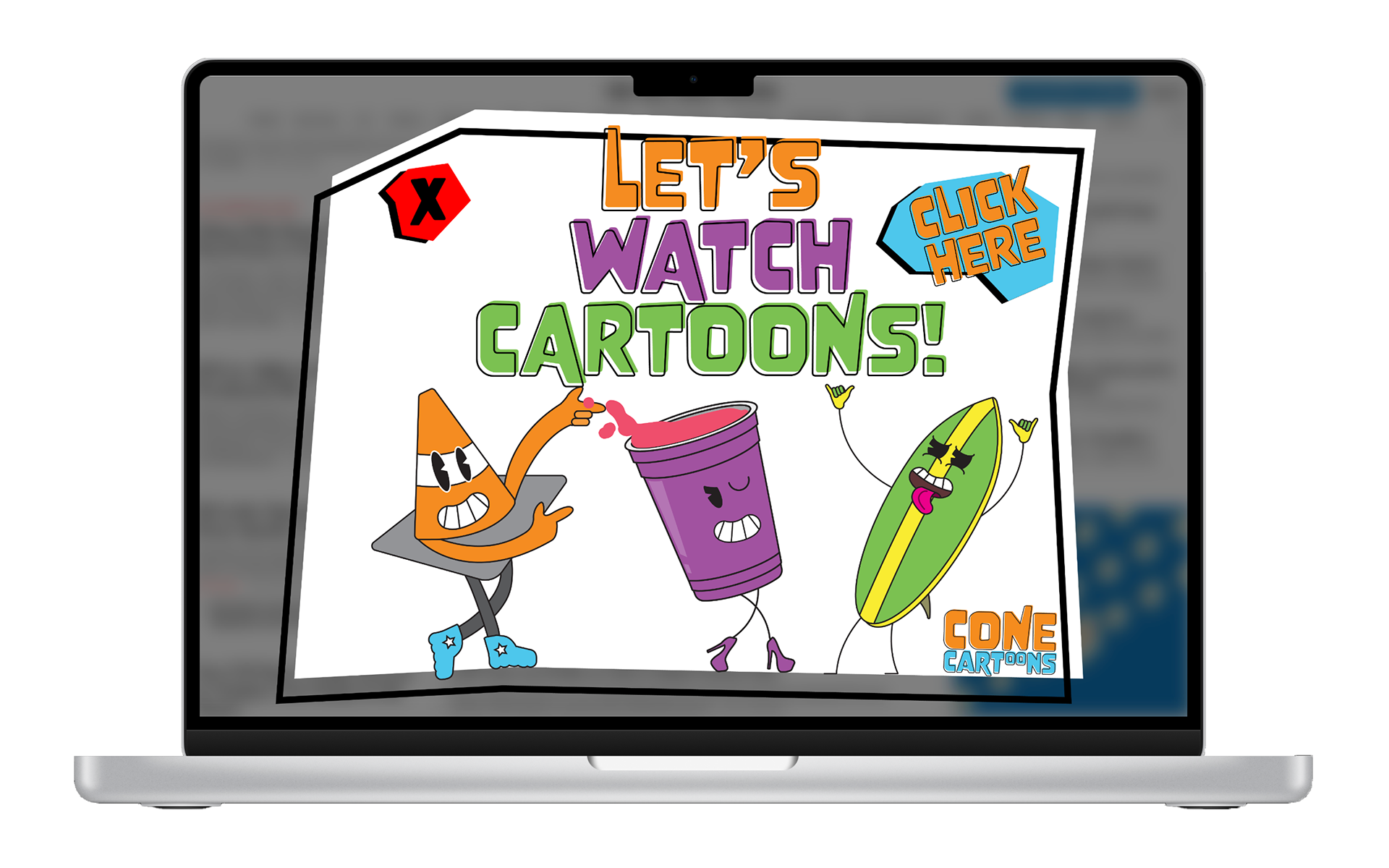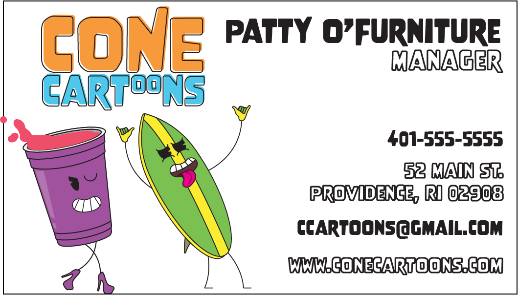 Bright colors, silly, fun characters and a touch of adult humor come together in a personification of objects that create visual excitement and just plain fun. Through an exploration of whimsical illustrations, a vibrant, saturated color palette and stick-figure anthropomorphism, the visual identity of Cone Cartoons began to come to life.